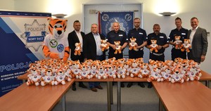 Sądecka Fundacja Bezpiecznie do Celu we współpracy z Fundacją Klub Biznesowy przekazała policjantom maskotki, które mundurowi małopolskiego garnizonu Policji będą wręczać najmłodszym uczestnikom zdarzeń drogowych. Rolą „pluszowych ratowników” będzie zapewnienie poczucia bezpieczeństwa, ciepła i bliskości, czyli wszystkiego tego, co dzieci tracą w wyniku nieszczęśliwego zdarzenia drogowego.