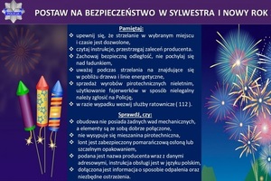 Zbliża się okres noworoczny, więc w sklepach można kupić fajerwerki. Pamiętajmy, że korzystając z petard i tego typu asortymentu musimy zachować szczególną ostrożność i rozsądek. Są one materiałami wybuchowymi, które mogą być niebezpieczne dla życia i zdrowia. Używajmy fajerwerków tylko w takim miejscu, w którym nie spowodują one zagrożenia dla innych oraz nie wywołają pożaru.